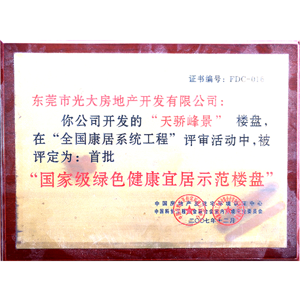 首批國家級綠色健康宜居示范樓盤
