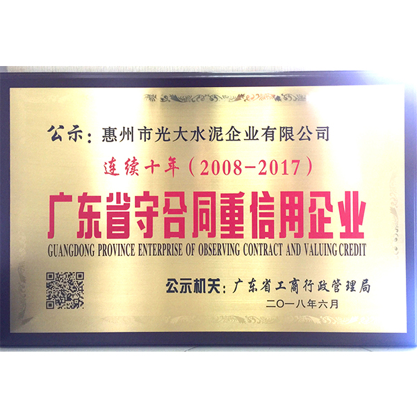 連續(xù)十年廣東省守合同重信用企業(yè)
