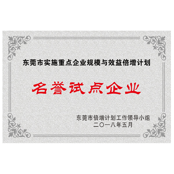 東莞市倍增計劃名譽試點企業(yè)