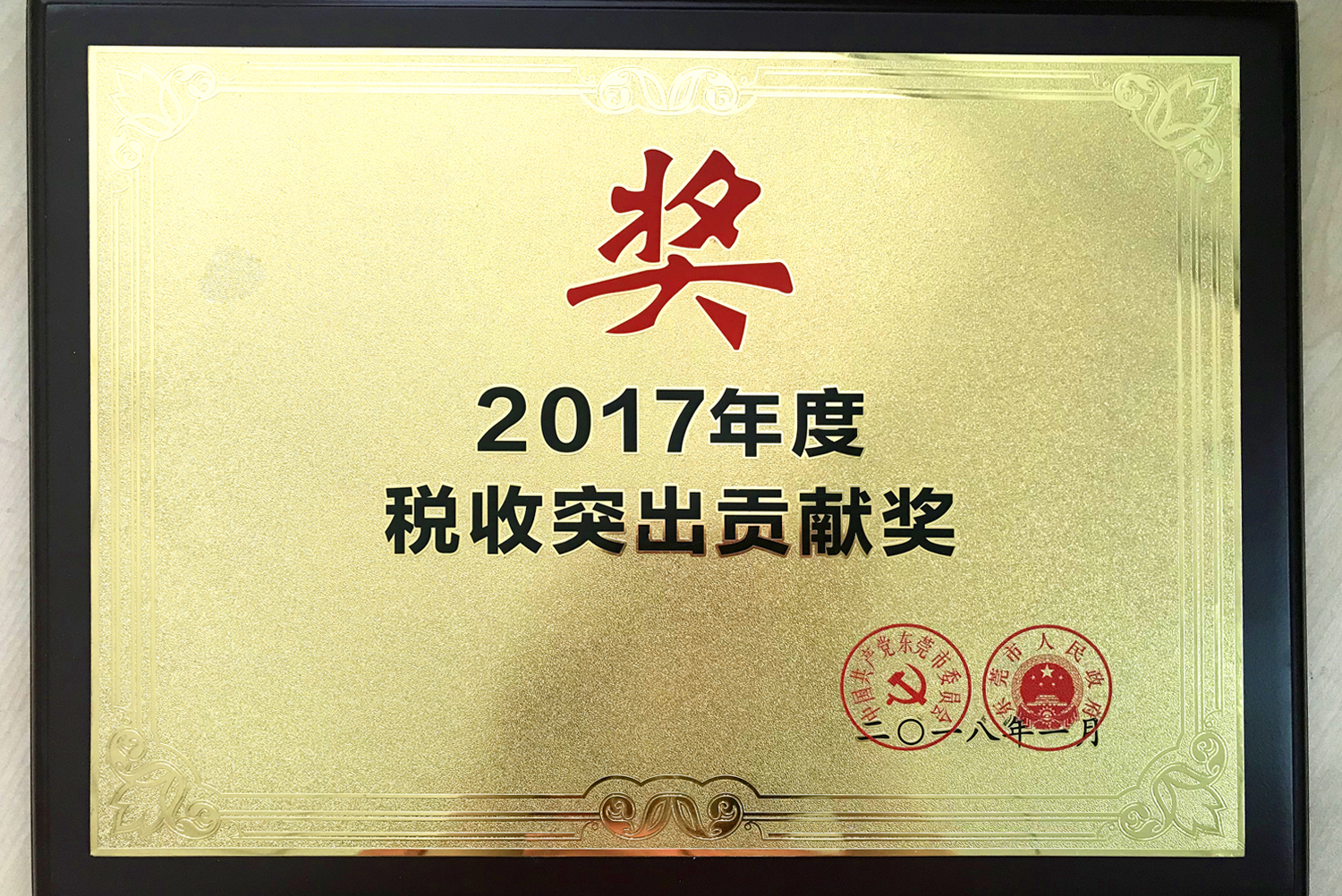 東莞政府納稅突出貢獻獎