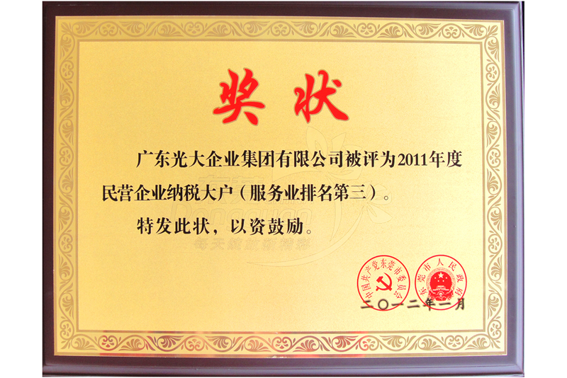 民營企業(yè)服務(wù)業(yè)納稅突出貢獻獎
